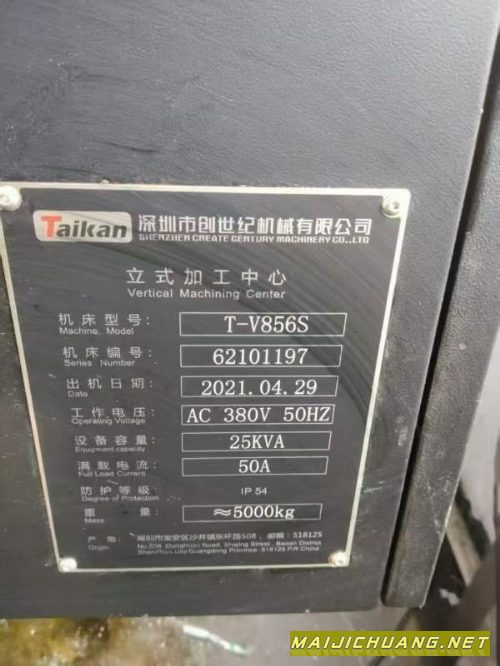:工厂在位准新2021年台群856S三线加工中心一台,系统高.