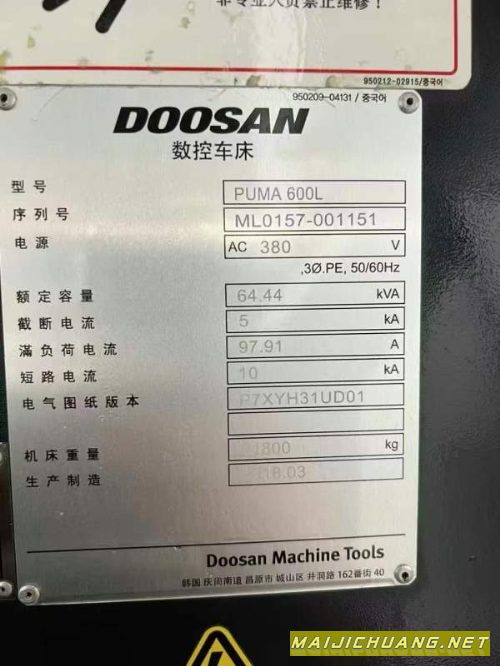 :韩国原装进口斗山PUMA600L数控车床,21寸液压卡盘,12.